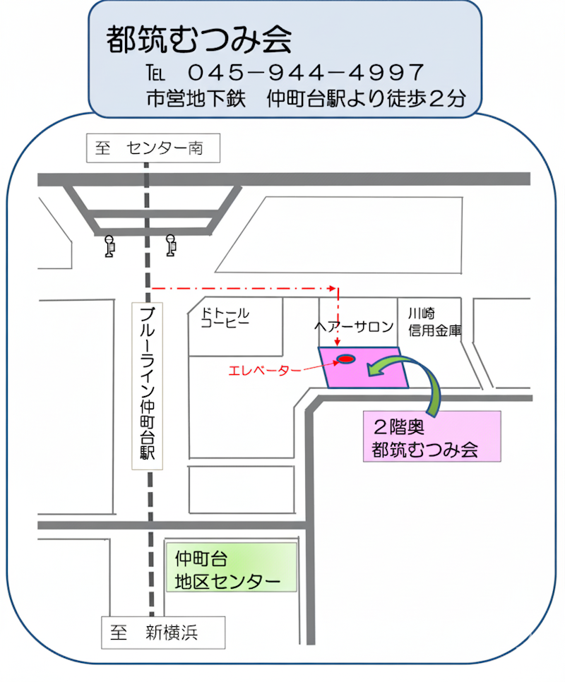 〒224-0041 横浜市都筑区仲町台1-7-18 ビュロー仲町台204